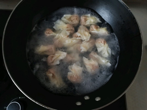 做法分解9:大火烧开,中途加一次凉水,再次煮开至馄饨飘起来就做好了。