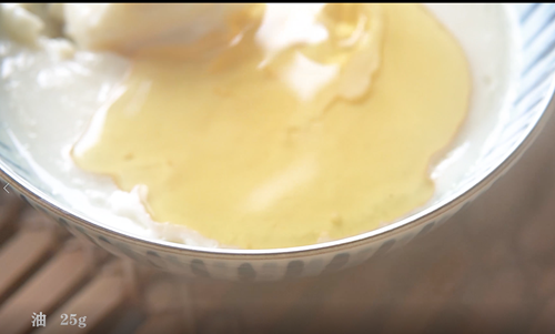 做法分解8:起锅,蒸好后从蒸锅取出碗,倒入油25克