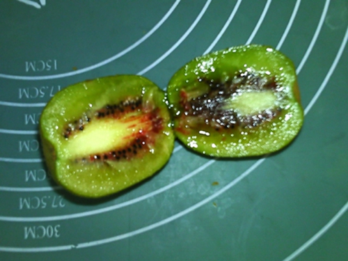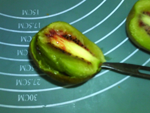 做法分解3:猕猴桃切成两半,