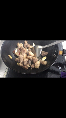 做法分解3:焯过水的牛肉洗干净,炒至变色,下姜片、葱段、花椒、辣椒(不吃辣就不放),翻炒均匀,加没过牛肉的开水,调入老抽,生抽,白糖,小火慢炖40分钟。