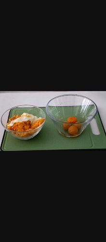 做法分解9:发酵的时候我们来做内馅儿,蛋黄喷白酒入烤箱180度烤七分钟。