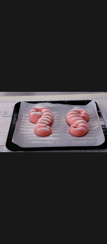 做法分解19:一端卷起,尾端朝反方向卷起(这个是新鲜火龙果榨汁的面团,)