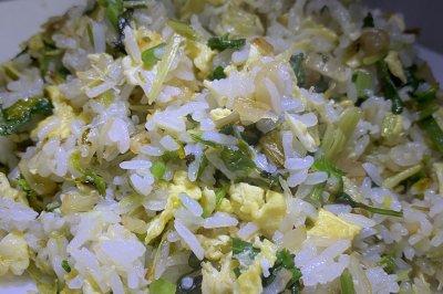 再把葱姜、米椒下锅煸炒出香味,全部到进香芹和羊肚里