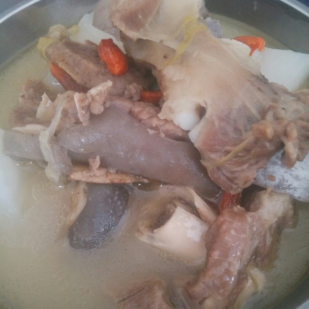 大火烧开,这时候就可以放葱白下去,一起煮,我是用砂锅煲一个半小时,再放白萝卜下去,煲半小时,起来后肉就很嫩了