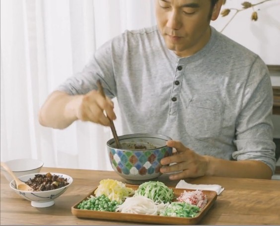 记得小时候,家里吃炸酱面菜码至少有八个!您可以吃锅挑,也可以吃过水。先淘两勺酱,倒入醋,加入青蒜和青豆,把面搅拌均匀,颜色呈鲜亮深红色,再把菜码儿码在碗边儿,边吃菜边吃面,蔬菜和酱面的味儿浑然一体,这样,蔬菜的汁儿不会渗入面中,面也更有嚼劲儿。嗯,这就是最正宗的老北京炸酱面。创食记林依伦18