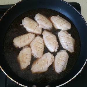摆盘后用勺子将汤汁均匀的浇在鸡翅上。