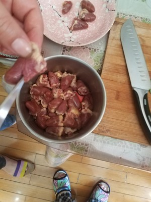 鸡心一定要清洗干净,切口后再次浸泡清洗,防止血块残留。