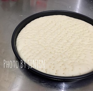 没有发酵箱的,可以放入烤箱发酵(烤箱放入一碗水发酵),或者室温发酵(现在温度比较高,室温发酵也很快)到完全,发酵好的饼表面会有轻微气泡,差不多是没发酵时候2.5倍大的样子。