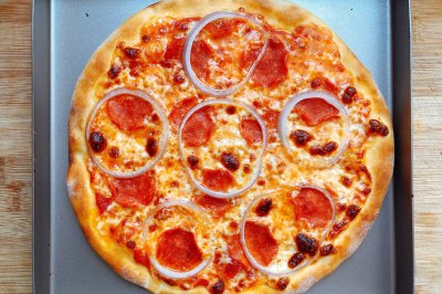 我看很多人烤披萨都是烤到芝士已经变硬变黑了才拿出来,那样是很难拉丝的,其实拷到芝士融化就已经熟了。