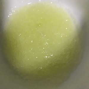 拿青菜糊糊视频为例,看最终蛋白霜糊糊状态,也是挂在硅胶铲上翻转不掉落,如果掉落,一定很稀了
