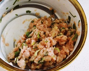 肉末加香葱、酱油、盐、胡椒粉、料酒、姜末、香油向顺时针方向搅拌均匀,搅拌时往同一方向搅拌,腌制15分钟左右