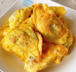 全程小火煎,将蛋对折后两边能粘合上即可起锅待用