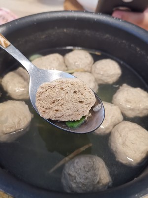 冷水下锅,等到水里有很多气泡时放入肉丸