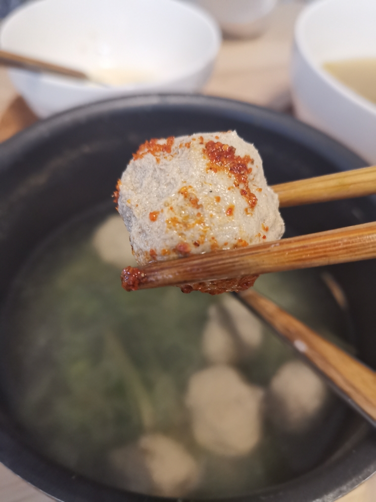 蘸个辣椒粉也挺好吃的,比外面潮汕牛肉锅好吃,也不腥。