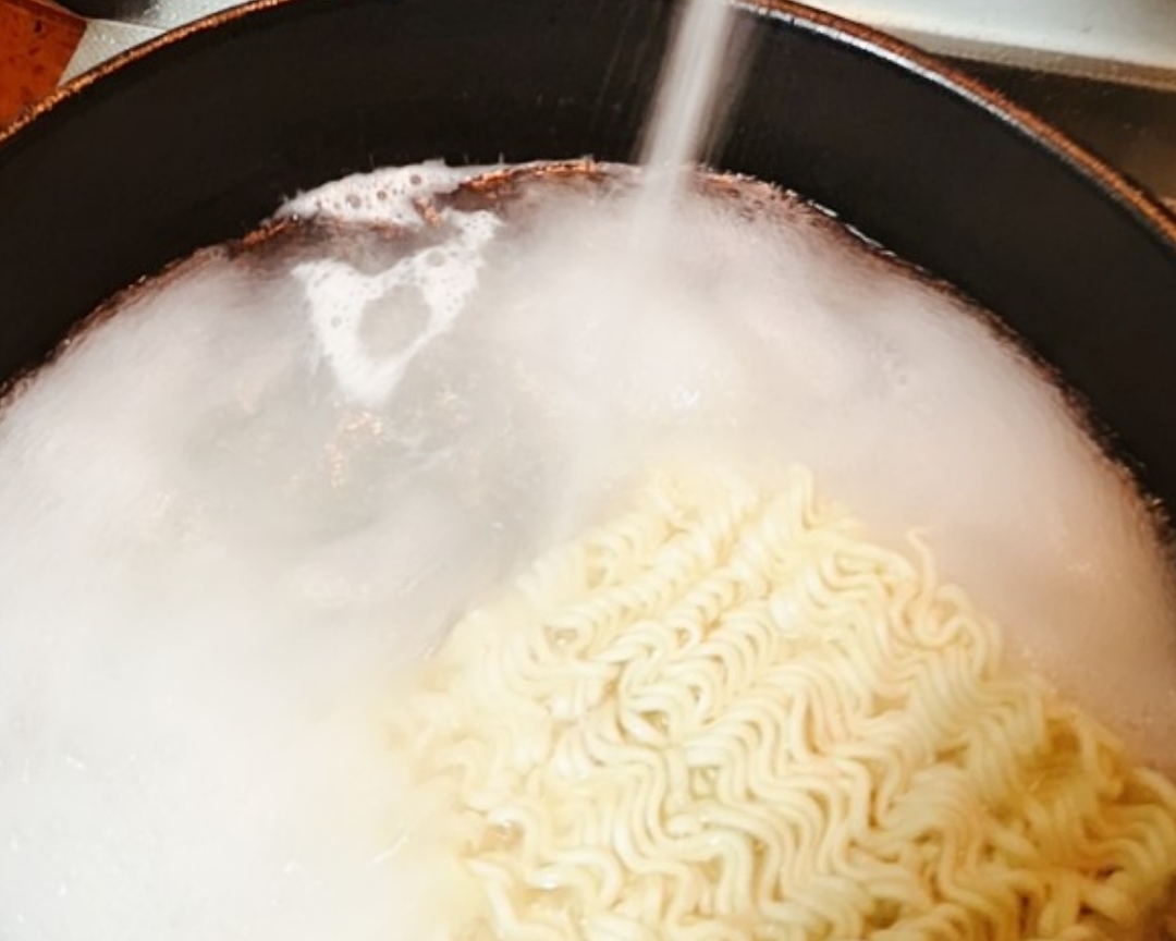 在锅里狂妄的撒盐,可以保证面条的劲道Q弹。(我根本吃不出来区别)