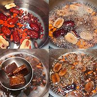 做法分解2:红糖放入后,继续炖煮,直到4碗水变成一碗水,你的滋补汤就完成了,趁热喝掉!