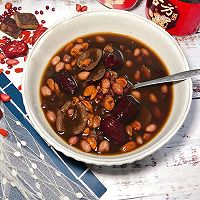 做法分解4:五红汤,同理,把所有的原材料准备好,放入锅里,炖煮,四碗水!红豆最好提前泡一泡!