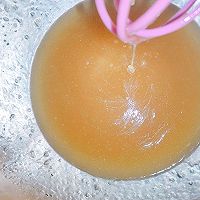 做法分解1:把转化糖浆、花生油、枧水称好放入干净的盆里,用打蛋器搅拌均匀。
