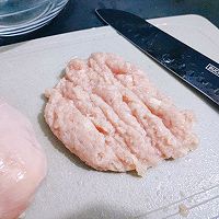 做法分解1:手打鸡肉丸步骤:首先将鸡胸肉洗净,按照鸡肉纹理切成条,再切成粒,最后用刀快速剁成肉泥。(有绞肉机省时省力)