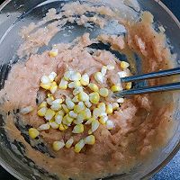 做法分解4:可以放入适量玉米粒增加风味和口感,同样搅打均匀,可用手挖出肉泥摔打使其更Q弹。