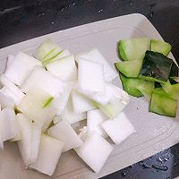 做法分解7:冬瓜洗净挖掉瓜籽,去皮切薄块。