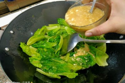 做法分解3:大火翻匀翻到杆们微软油润润了再扔叶,担心蒜糊可以偷偷淋上些水或酒