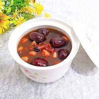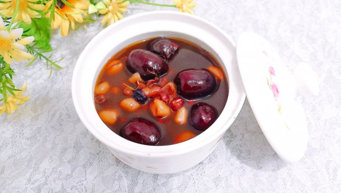 红豆100克,花生50克,红枣100克,红糖50克,黑枸杞20克,水1800克