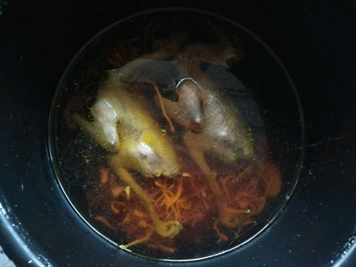 乳鸽2只,虫草花适量,红枣10颗,枸杞适量,生姜1块,盐适量