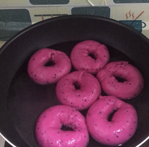 不加一滴水的火龙果贝果,吃起来有嚼劲