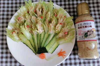做法分解4:黄瓜箍出水分,用刀大概切几下。