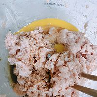 做法分解2:猪肉去皮绞碎,加1/3瓶盖料酒,一小勺生抽,一个鸡蛋,少许盐,少许香油调匀