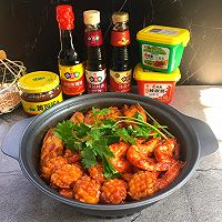 做法分解14:然后在食材表面淋上调制好的三汁酱汁。继续盖上锅盖焖10分钟左右即可。