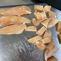 做法分解1:我用的鸡小胸,把鸡胸肉洗净切成块