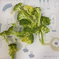 做法分解2:准备西蓝花,不用太多,上图的4-5个就差不多。用盐水泡一会儿。