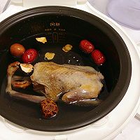 鸽子1只,花菇2朵,红枣3枚,枸杞10粒,桂圆1个,老姜2克