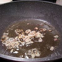 做法分解5:放入蒜头、葱白和辣椒,再爆片刻;