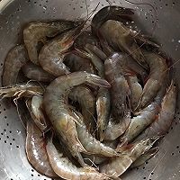 做法分解3:除去壳头尾,用刀在虾身上划一刀除去黑线,放上姜丝,蚝油,盐,生抽,油,生粉,料酒,糖,腌制半小时