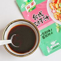 做法分解4:家乐台式三杯汁调味料用4汤匙清水调匀。看似简单的一包调味料,里面包含了地道台式配方:一杯酱油、一杯麻油和一杯酒。黄金配比的“三杯”变成简单不失原味的“一包”。让厨房小白从此告别手忙脚乱;