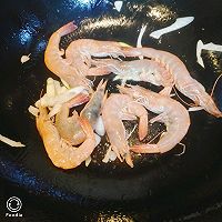 做法分解4:锅中放油,放葱,虾翻炒