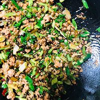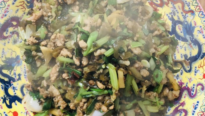 肉沫要炒干水分,否则有腥味,酸菜煸香来自三胖私房菜的作品。