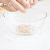 做法分解4:▲鸡肉泥中打入一个鸡蛋白,倒入淀粉搅拌均匀。
