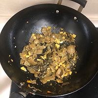 做法分解3:加入酸菜和泡椒炒出香味,顺便把两者水分炒干一些(怕辣可以不放泡椒)。