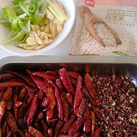做法分解4:准备葱姜蒜,干辣椒和花椒粒,白芝麻