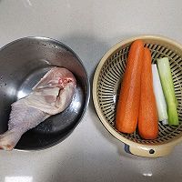 做法分解2:然后准备一只鸡腿两根去皮胡萝卜一根洗净大葱