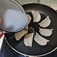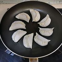 当锅子里的饺子煎熟出现焦底水份全部收干后关火出锅