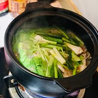 做法分解3:准备一个砂锅,依次加入食材,开小火慢慢爆香