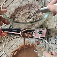 做法分解2:2??蛋黄蛋清分离,厨师机的打蛋盆一定要无油无水的。盆里放入牛奶玉米油还有蛋黄搅拌均匀后筛入称量好的低筋面粉和可可粉,Z字画开,这里不能过度搅拌防止低筋面粉皮筋影响口感。