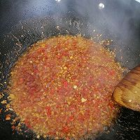 做法分解6:锅里放适量的油,油热后倒入切好的蒜辣去爆炒,放盐和酱油。这里放够盐了,后面就不用再放盐了。
