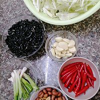 木耳50克,包菜一个,辣椒20个,蒜头20瓣,盐适量,油适量,酱油适量,葱头适量