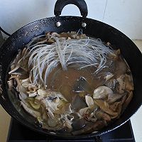 做法分解6:加热水没过鸡肉,放入蘑菇和酱油,煮开。7.转中小火,盖盖炖煮30分钟
